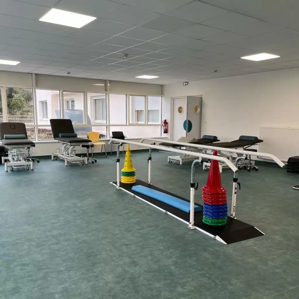 Il s’agit d’un espace moderne et polyvalent, entièrement équipé pour accompagner les patients dans leur parcours de rééducation fonctionnelle, de réathlétisation (reprise progressive de l’activité physique, notamment après une chirurgie ou un traumatisme), et de réadaptation (retour à l’autonomie dans les gestes du quotidien).